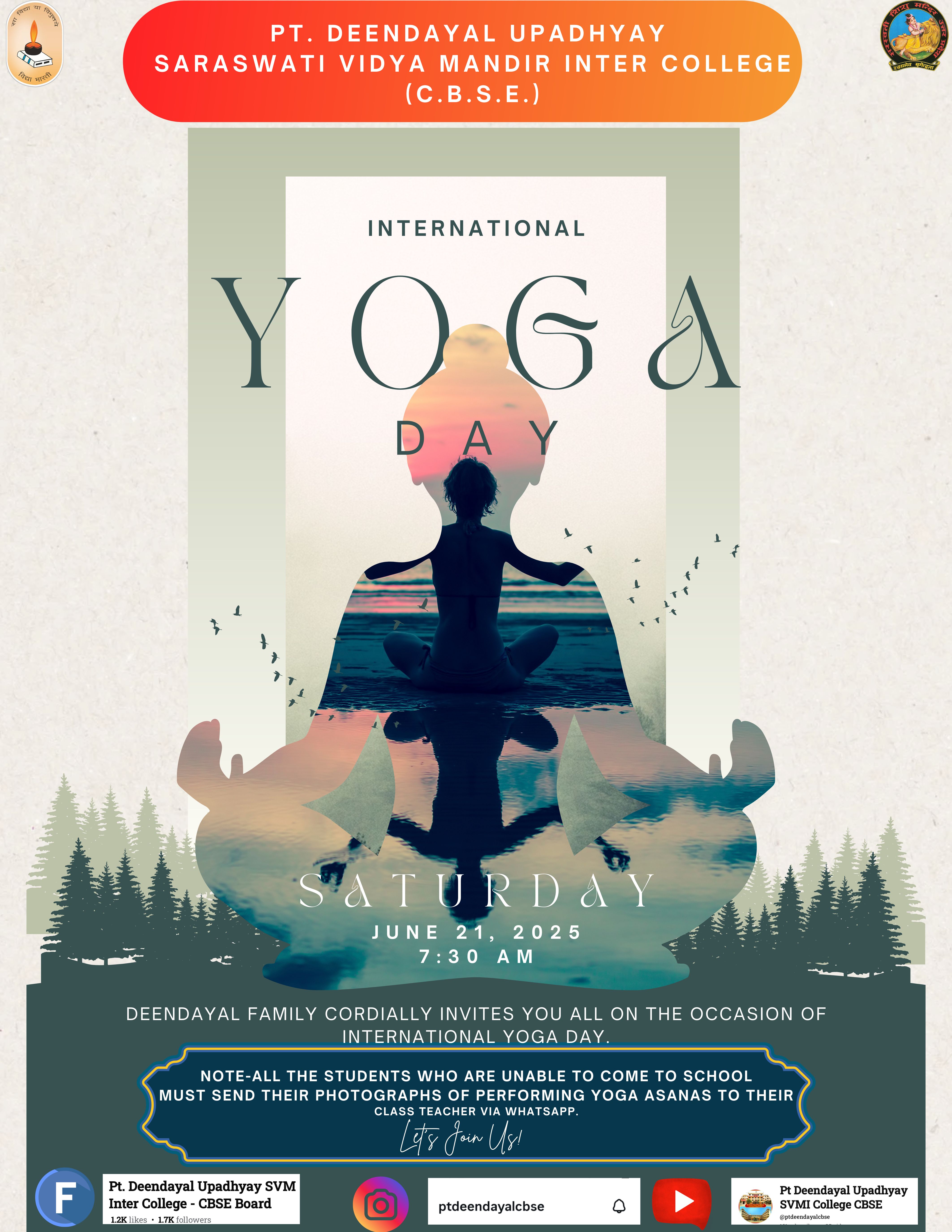 Regarding celebrating Yoga Day in the school on 21st June from 7.30 am to 8.45 am.